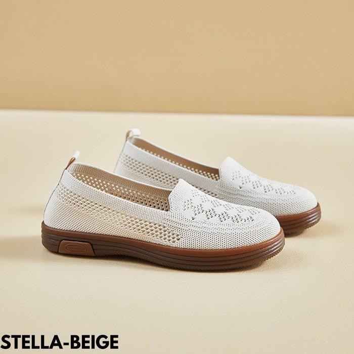 Sepatu Sneakers Wanita Praktis Elastis Nyaman Dipakai Daily Kampus Kantor Bahan Flyknit Bagus Stella - Beige 36