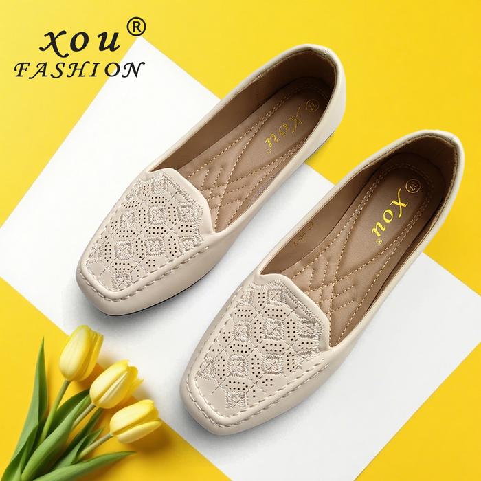 XOU Fashion Flatshoes Wanita Sepatu Flat Model Casual Kerja Daily B-34 Dengan Desain Elegan dan Nyaman - Beige 35