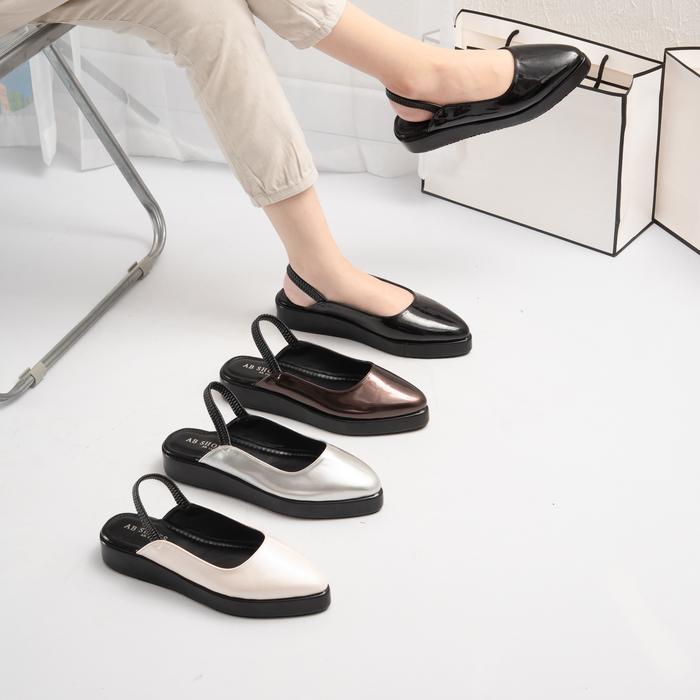 Sepatu Flat Wanita Kekinian | Slingback Platform Santai Elegan | Flats Shoes Kasual Kerja & Jalan - HITAM 36