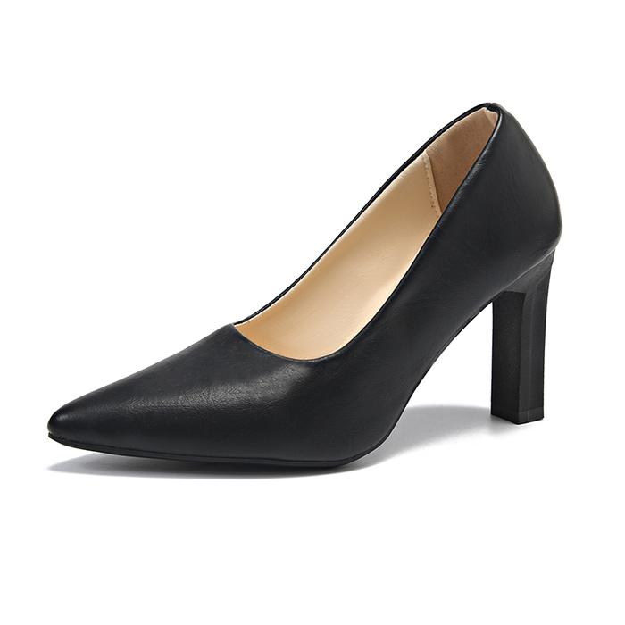 Venalisa heels wanita elegan 8cm Sepatu Jalan Kaki Versi Korea Santai Nyaman Gaya Kantor Kulit - Black 34