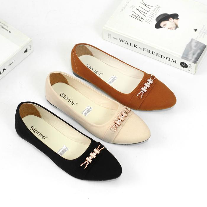 Flatshoes Wanita BL14 untuk Kerja dan Keseharian - Hitam Karet - Hitam 37
