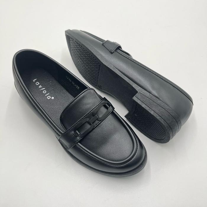 Laviola 4345 LSF - Sepatu Loafers Docmart Flat Black dan Pink Wanita Shoes - BLACK 37