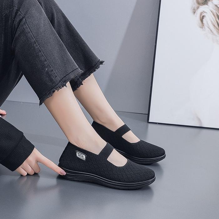 FREE BOX Danielle Flatshoes Wanita Sepatu Flyknit LV0467 - HITAM 36