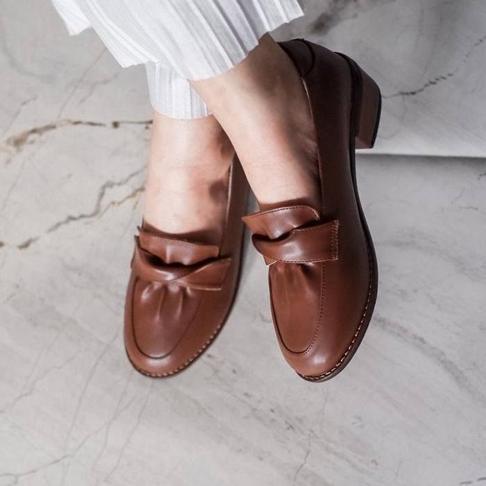Yovvli Tavia Flatshoes Sepatu Kerja Wanita Hitam Coklat - Brown 36