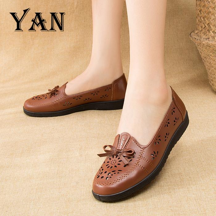 YAN Sepatu Flat Shoes Wanita Kulit Sepatu Slip On Terbaru Sepatu Kantor Nyaman Bernapas - BEIGE 36