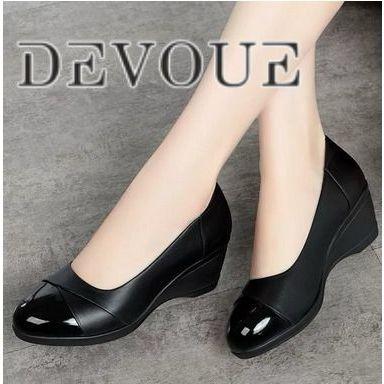 DEVOUE #066【Free Box】Sepatu Wanita Kerja Kantoran Kekinian Anti Slip Flat Shoes Sol Karet - Black 40