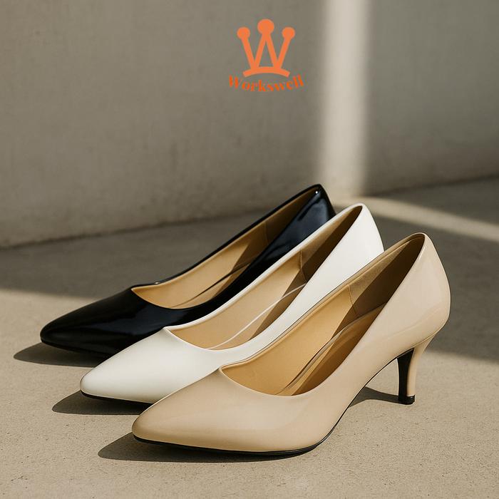 Workswell Sepatu Kerja Wanita Medium Heels 5cm Kode 396 Glosy - HITAM GLOSI 35