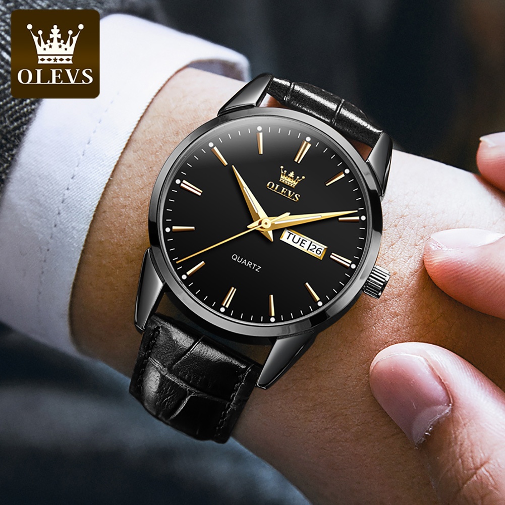 OLEVS Jam Tangan Pria Anti Air Original Tahan Kulit Tali Laki Laki Cowok Men Watch Hitam Putih 6898