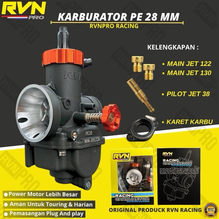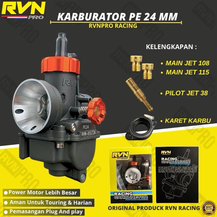 KARBURATOR KARBU RVN PRO ORIGINAL PE RVN PRO RACING 24 26 28 HITAM BLACK SERIES FREE PILOT MAIN JET JARUM KARBU HIGH