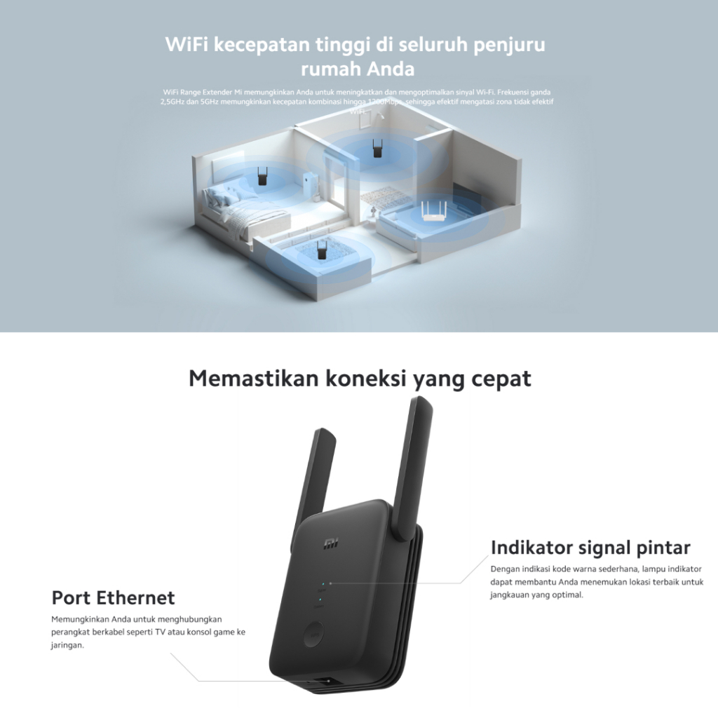 Xiaomi WiFi Range Extender AC1200 | 2 Eksternal Antena | Dual-band 2,4 GHz dan 5 GHz | Kecepatan Hingga 1200Mbps