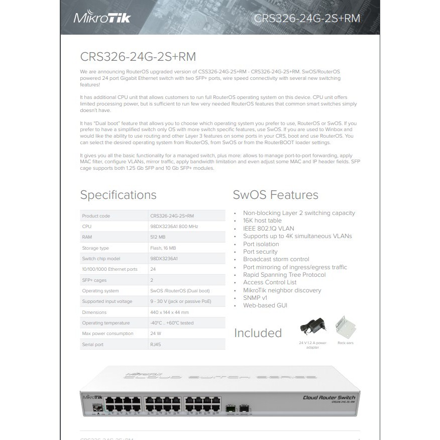 MikroTik CRS326-24G-2S+RM Switch Dual Boot