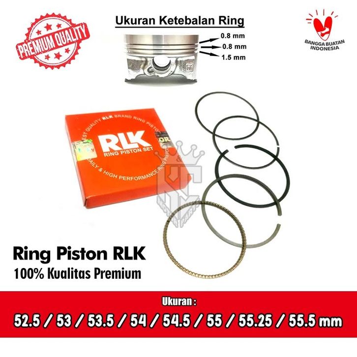 Ring Piston Racing 52.5 53 53.5 54 54.5 55 55.25 55.5 mm Tebal 0.8 x 0.8 x 1.5 RLK