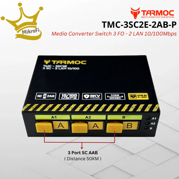 Tarmoc TMC-3SC2E-2AB-P | Media Converter Switch 3FO 2LAN / 3 FO 2 LAN 10/100Mbps POE IN 5-24 Volt | 3SC 2LAN / 3 SC 2 LAN 10/100 Mbps