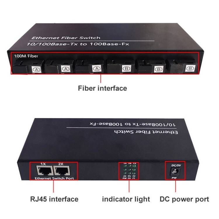 Media Converter 6 Port FO 2 Port LAN Fiber Switch Optic 6 SC 2 RJ45 Optical Dengan EU Adapter