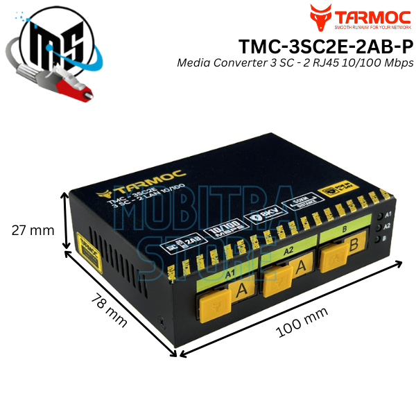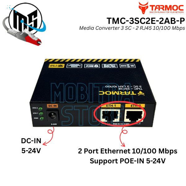 Tarmoc TMC-3SC2E-2AB-P | Media Converter Switch 3SC 2LAN / 3 SC 2 LAN 10/100Mbps POE IN 5-24 Volt | 3FO 2LAN / 3 FO 2 LAN 10/100 Mbps