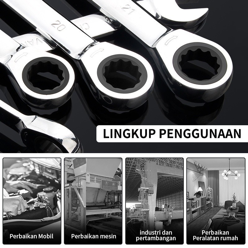 Isku Kunci Ring Pas Rachet 8pcs Kuat Anti Karat Kunci Rachet Multifungsi Bolak Balik Kunci Shock Set