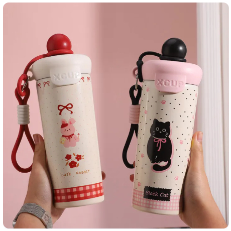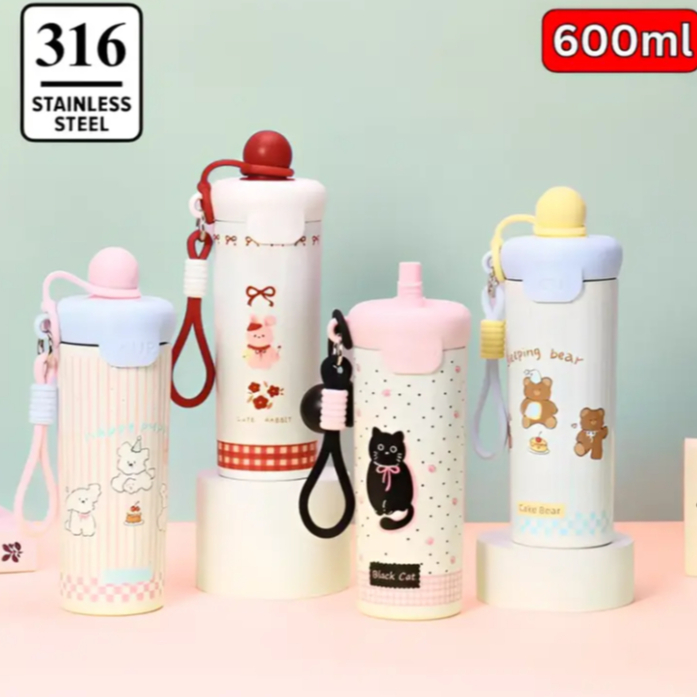 Tumbler Bottle n Cold Stainless Steel 600ML / Botol Minum Cute Anak Dewasa Tali Handle SUS 316