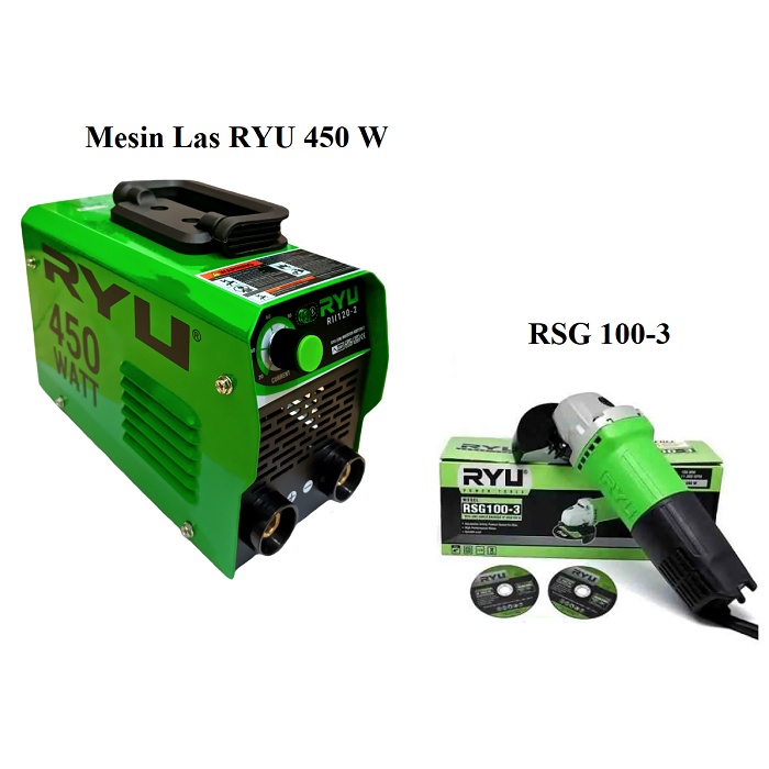 PAKET Hemat 3 ITEM Mesin Travo Las Listrik RII 120-2 450 watt Mesin Las 450 Watt RYU 120a Trafo Travo Las + Mesin Gerinda 4 inch RSG 100-3