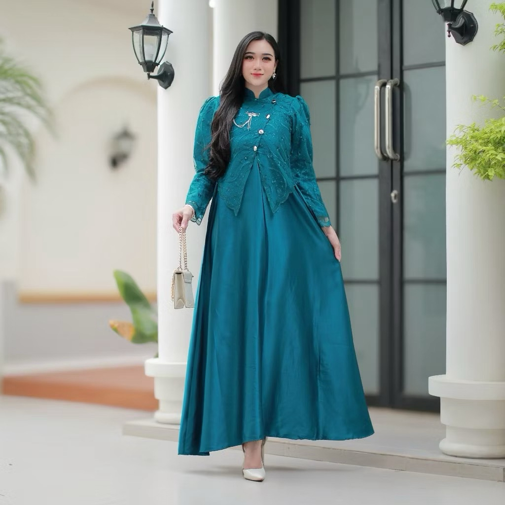 BY KARYAKU BATIK SAHARA DRESS LEBARAN 2026 DRESS JANGGAN BUSUI FRIENDLY GAUN PESTA MAXMARA MIX BROKAT PREMIUM MEWAH ELEGAN