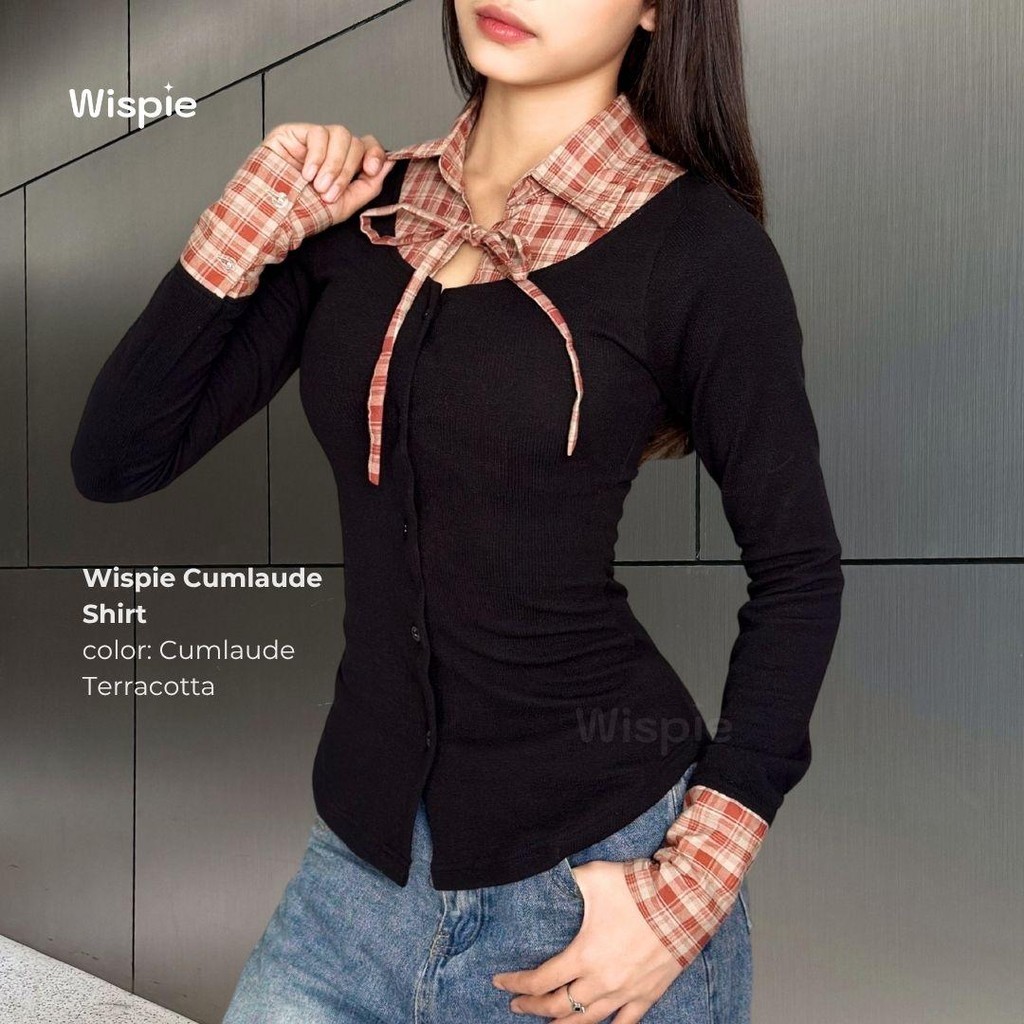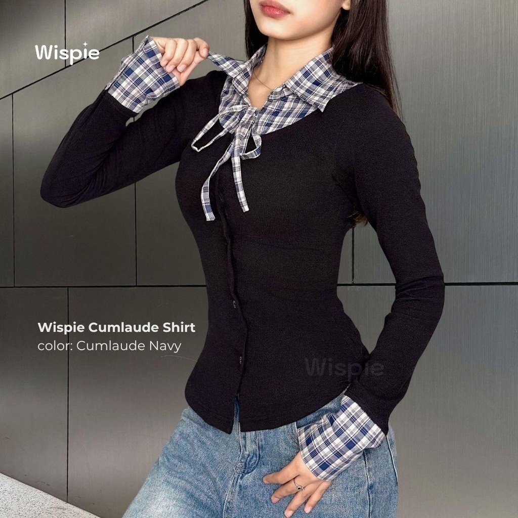 Wispie Cumlaude Top | Atasan Kemeja Kaos Wanita Kotak Gingham Rib Hitam