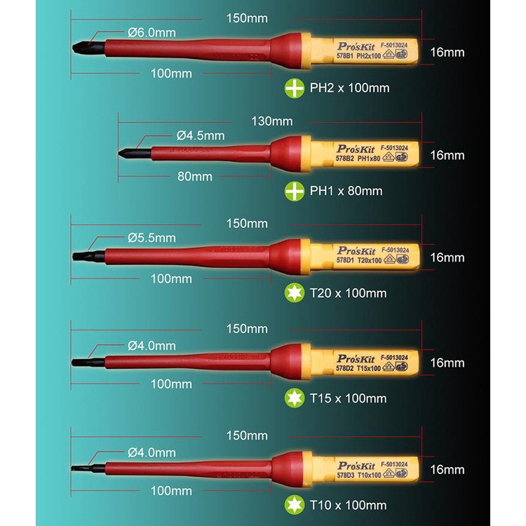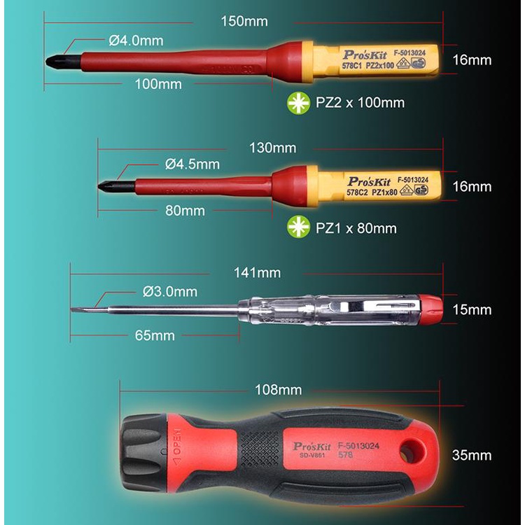 Proskit SD-V861 13 IN 1 Obeng Set Insulasi VDE Tahan Hingga 1000V
