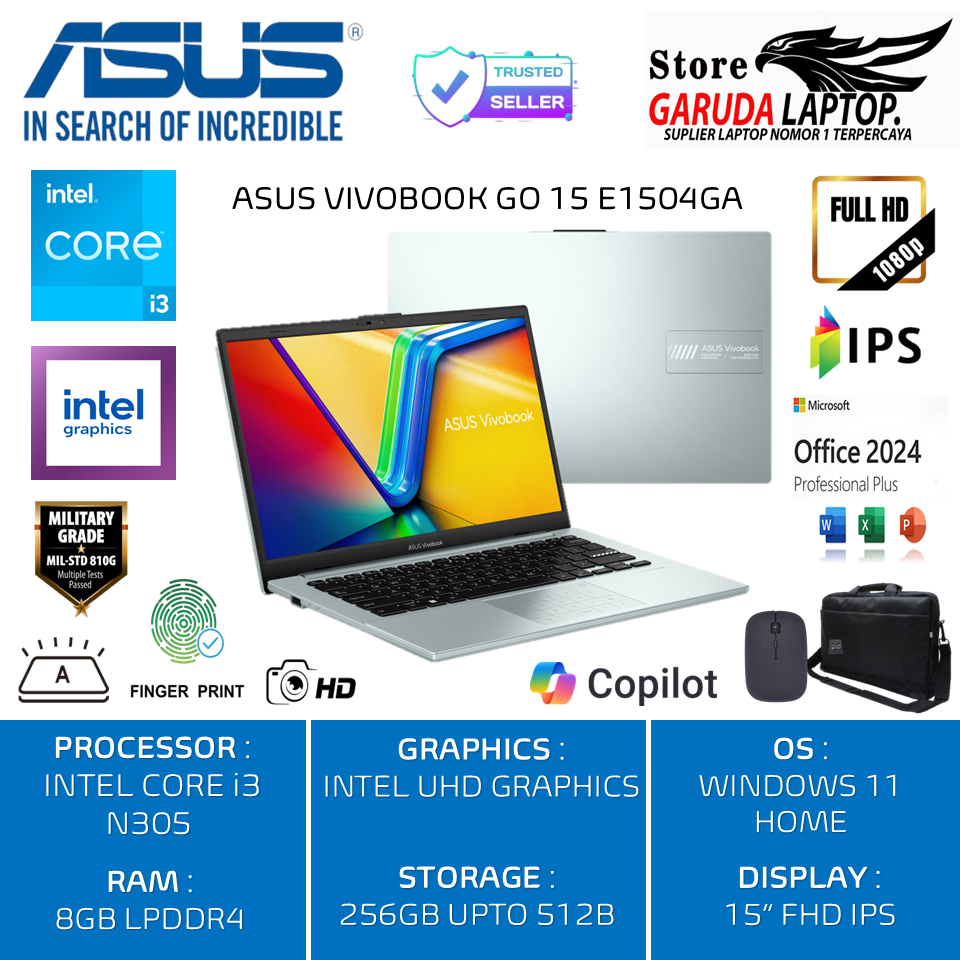 Laptop Baru Asus Vivobook Go 15 E1504GA Intel Core i3 N305 RAM 8GB 512GB SSD 15.6 FHD IPS Bergaransi