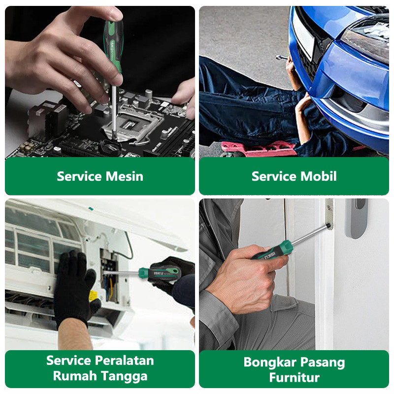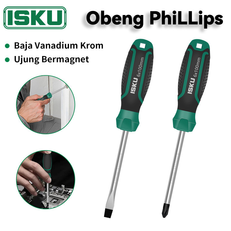 ISKU Obeng Plus Minus 2pcs Screwdriver Set Tip Magnetik Chrome Vanadium Obeng