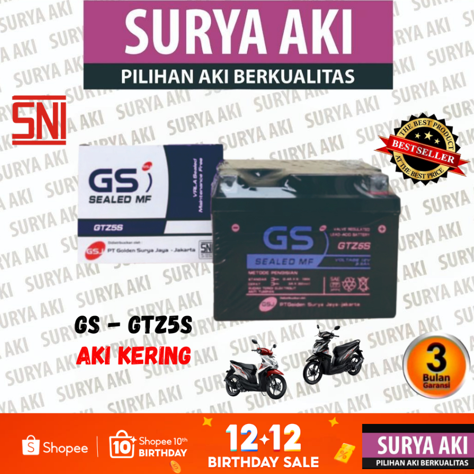 Aki Motor GTZ5S MF Aki Kering Yamaha Fino Vario 110 Honda Beat Supra X 125 Scoopy Spacy Blade Revo New Mega Pro - Free Bubble Warp Dus