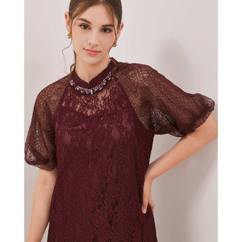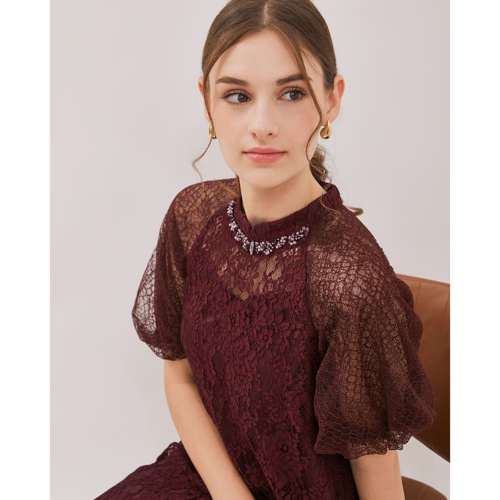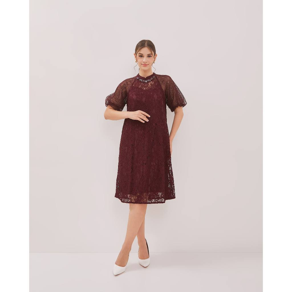 URBAN EXCHANGE JANE MAGENTA DRESS / MIDI DRESS BROKAT FESTIVE NATAL