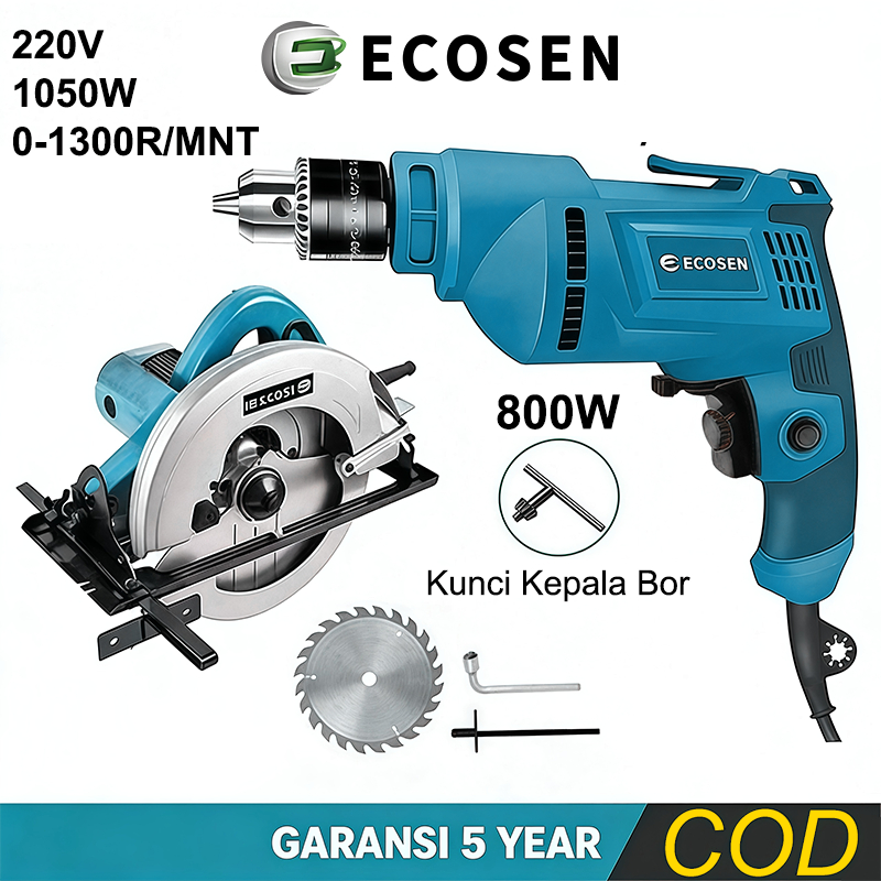 ECOSEN 1050W Circular Saw Mesin Gergaji Kayu Triplek Sirkel Serkel Plus Mesin Bor Elektrik Drill Listrik Japan Tehnologi Mesin Potong