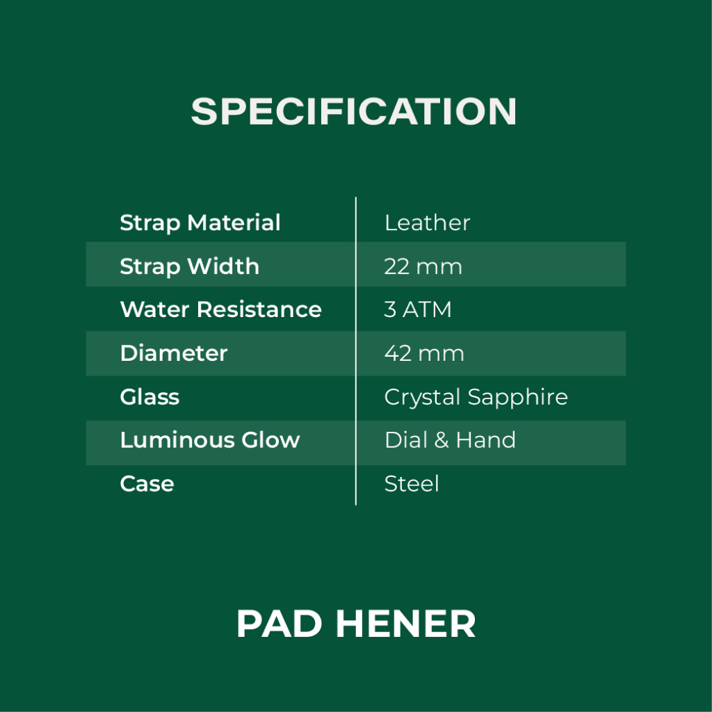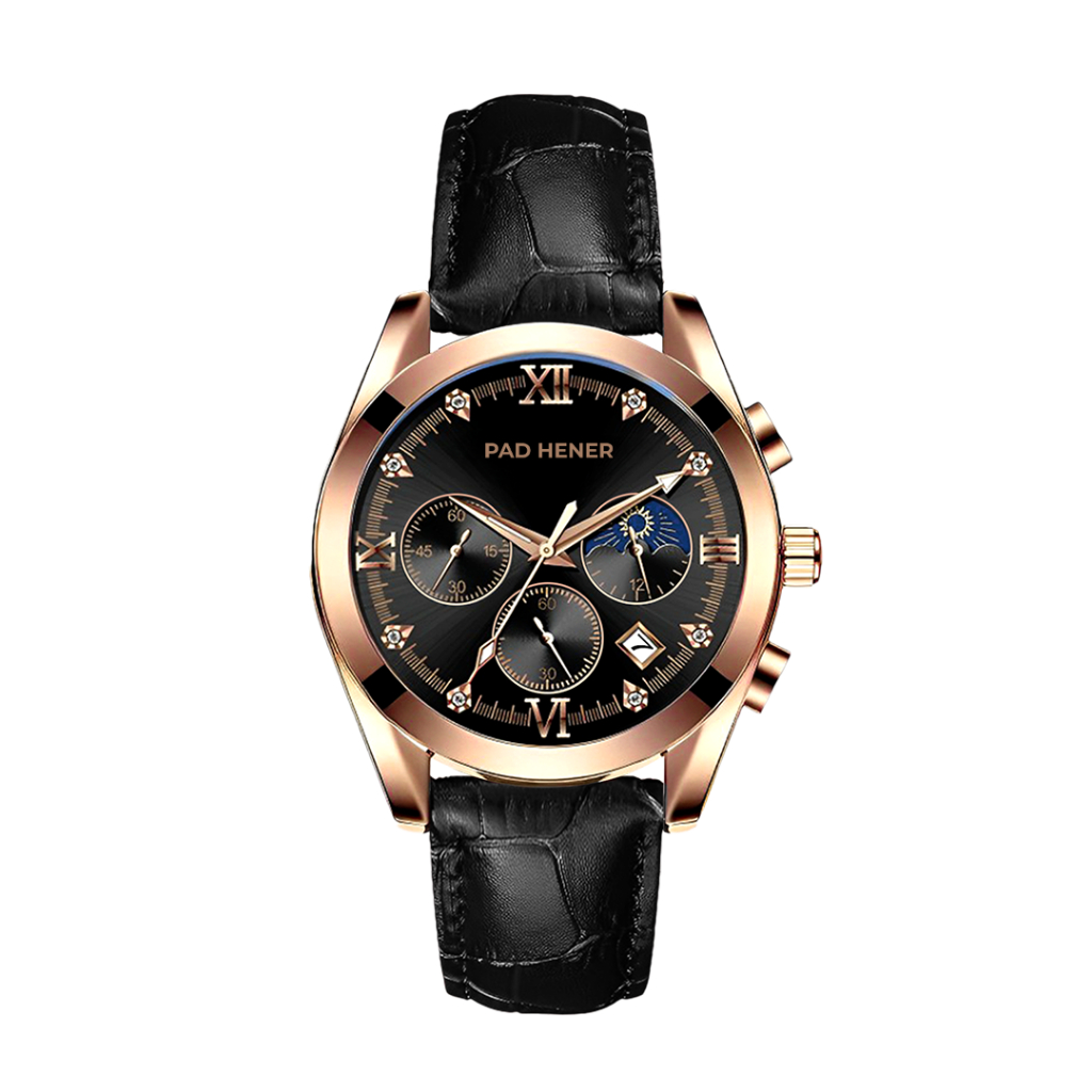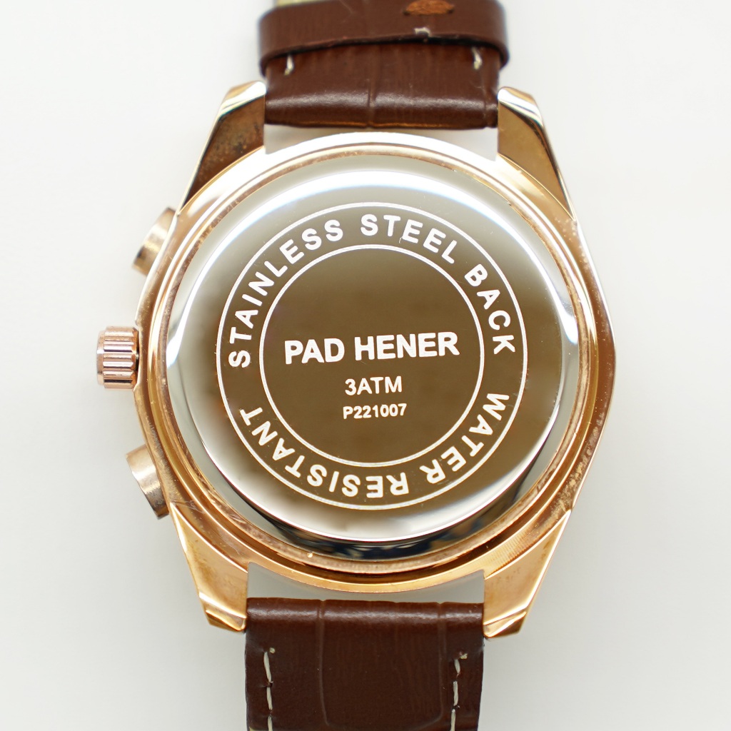 PAD HENER Eugene Leather Rose Gold Jam Tangan Pria Wanita Anti Air 42mm