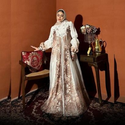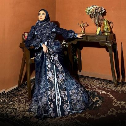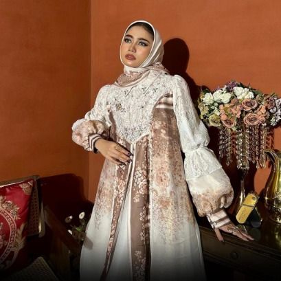 Naviza Dress Set Hijab Material Silk Mix Brukat Mix Organza Full Pattern Exlusiv By Elly Arsy