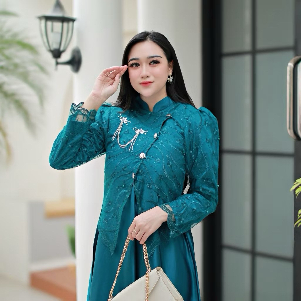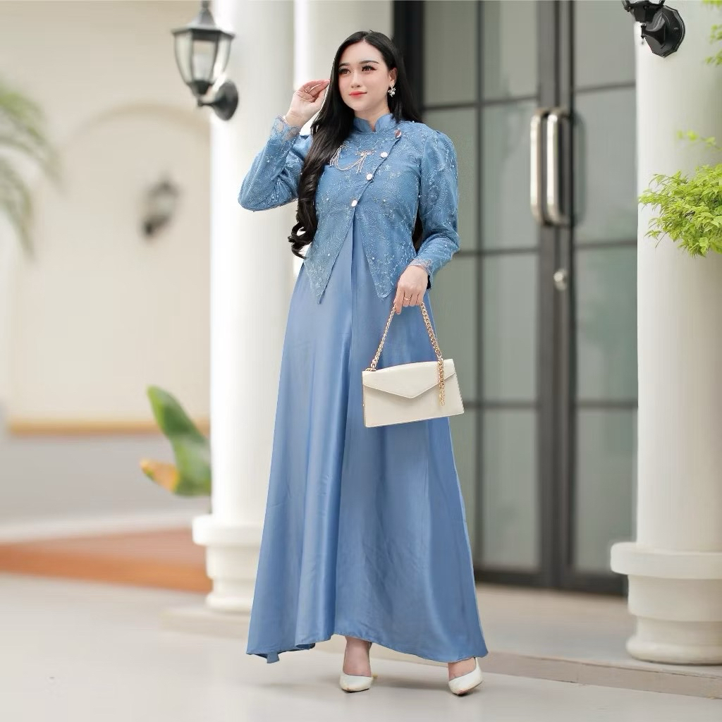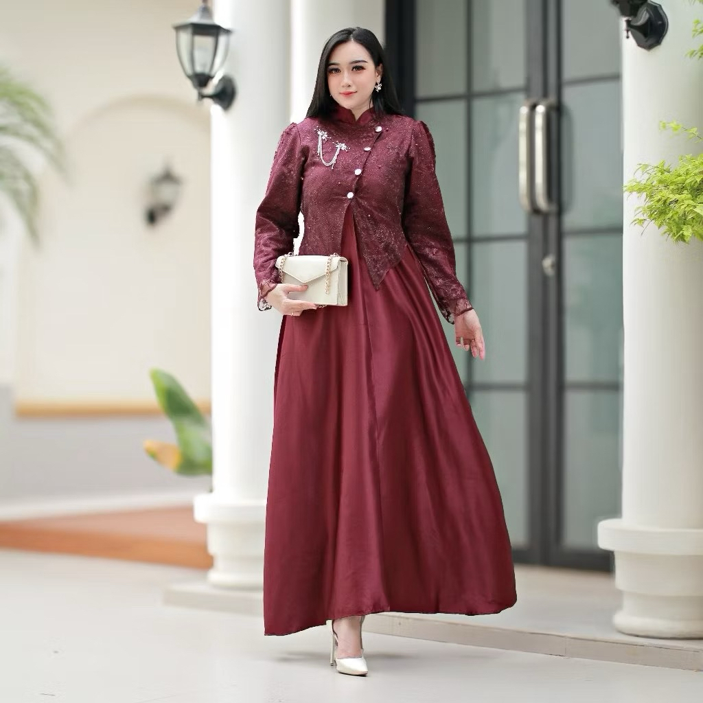 BY KARYAKU BATIK SAHARA DRESS LEBARAN 2026 DRESS JANGGAN BUSUI FRIENDLY GAUN PESTA MAXMARA MIX BROKAT PREMIUM MEWAH ELEGAN