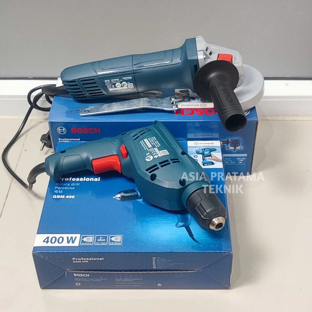 BOSCH Paket Tukang Gerinda Tangan GWS 700 Angle Grinder 4 Inci x Mesin Bor GBM 400 Rotary Drill 10 MM Professional