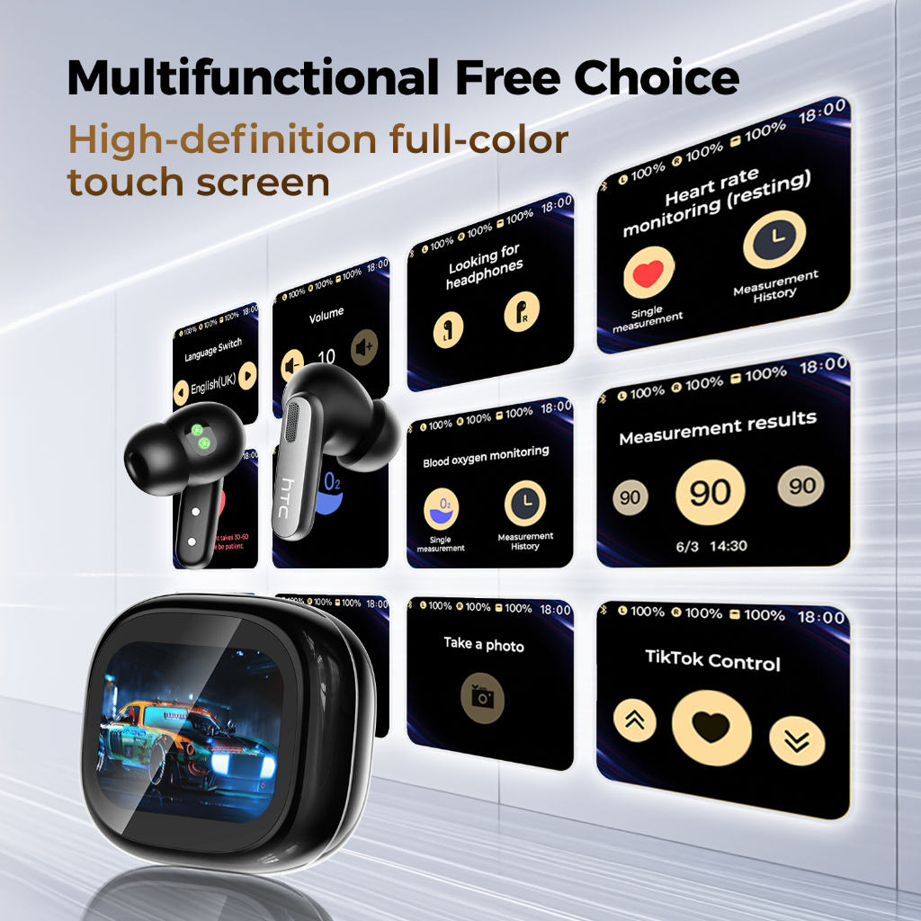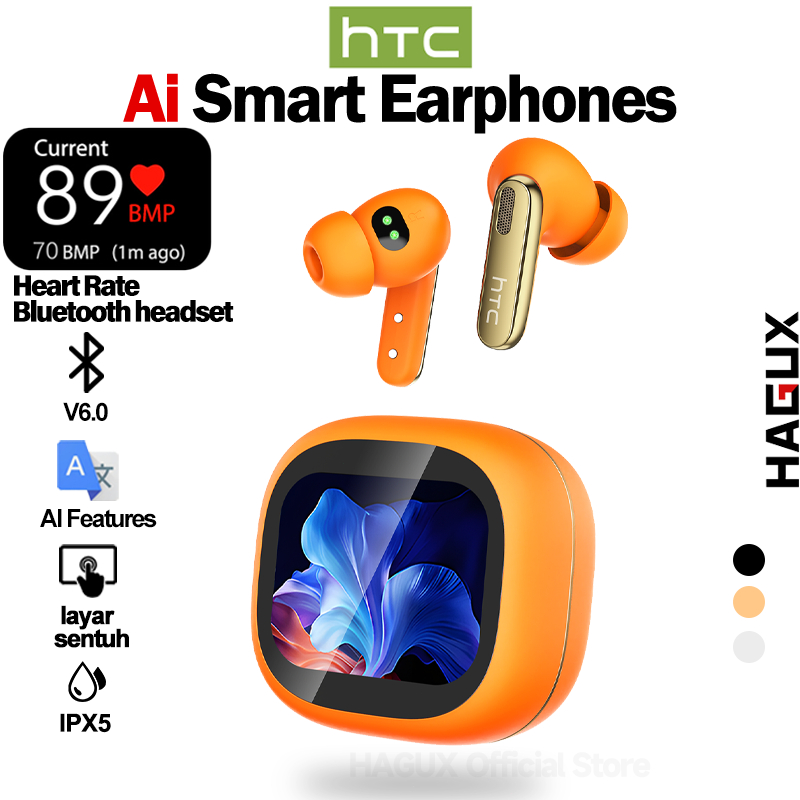 HTC NE46 Headset Terjemahan AI True wireless Bluetooth earphones V6.0 In-Ear earphone Deteksi detak jantung tws sport