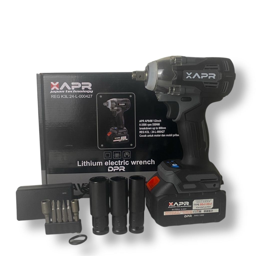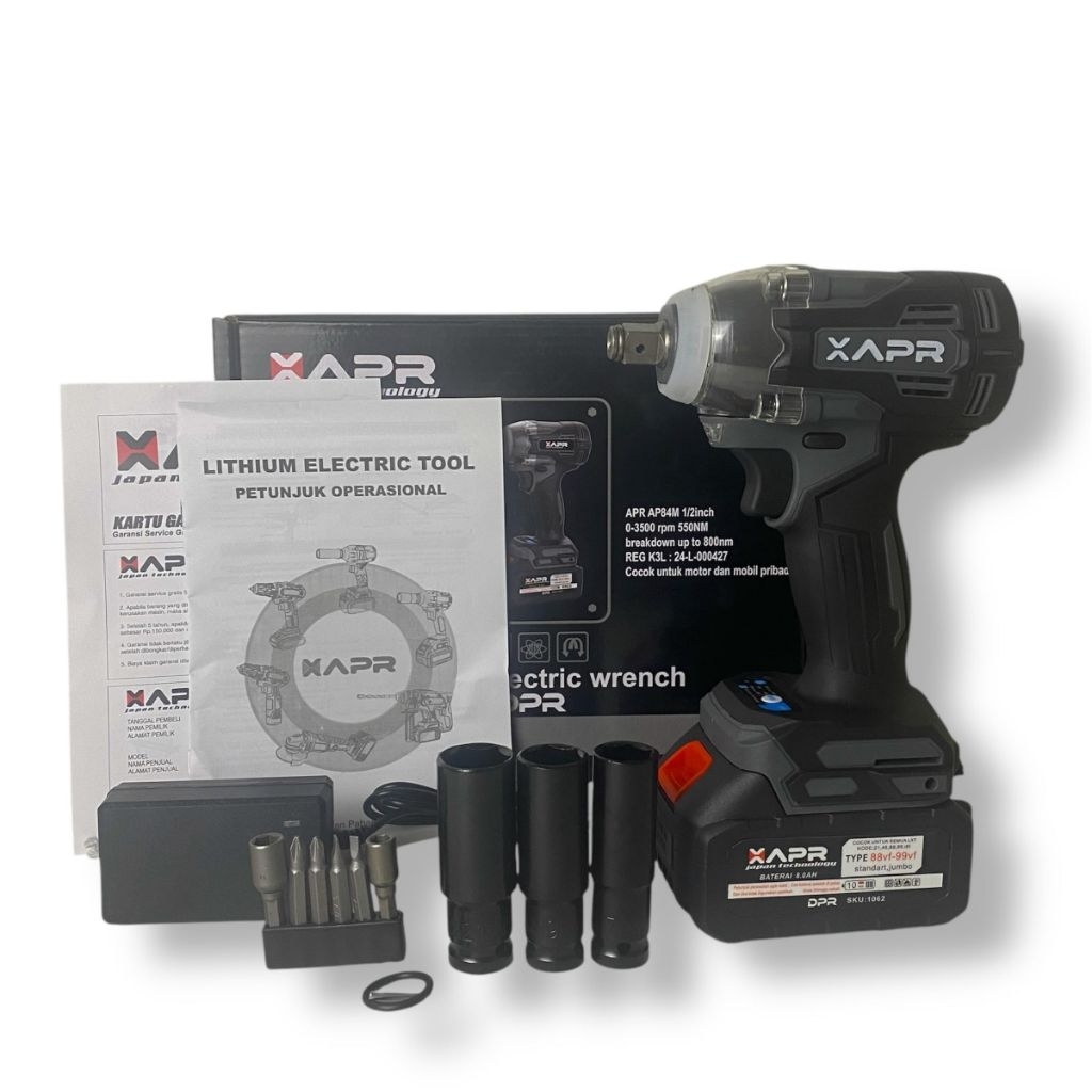 ORIGINAL APR impact wrench type AP84M 50nm baterai 88v standart fullset accecoris lxt 10cell