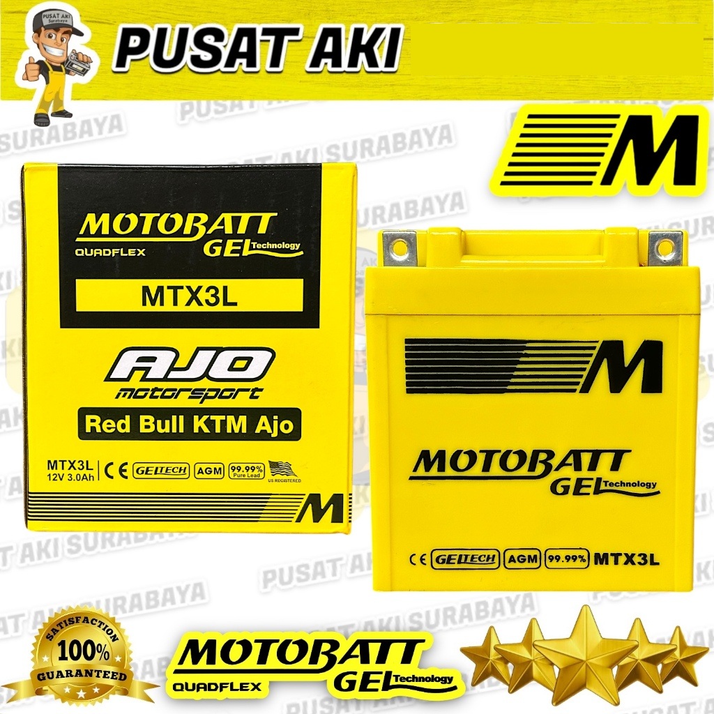 ORIGINAL ACCU MOTOBATT MTX3L AKI GEL KERING MOTOR RX KING NINJA 150 BATERAI MF BEBAS PERAWATAN YB3L