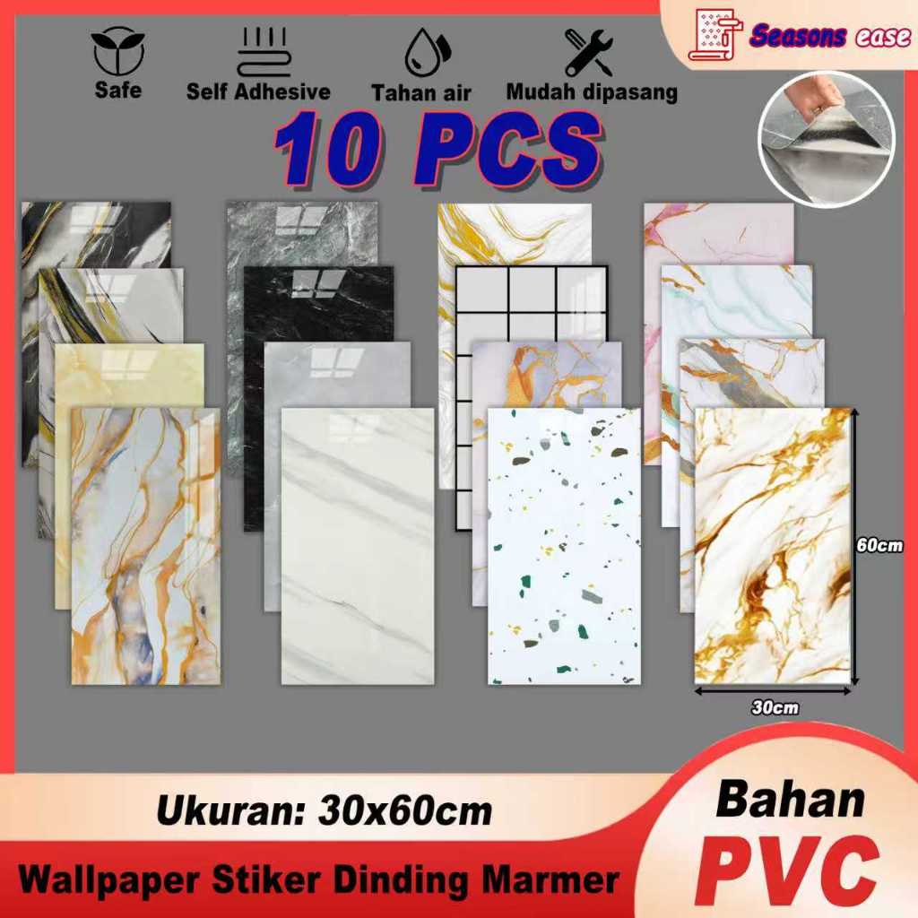 Wallpaper Dinding Marmer Vinyl Motif Granit Ukuran 30 x 60 cm Paket 10 Pcs Glossy Tahan Air