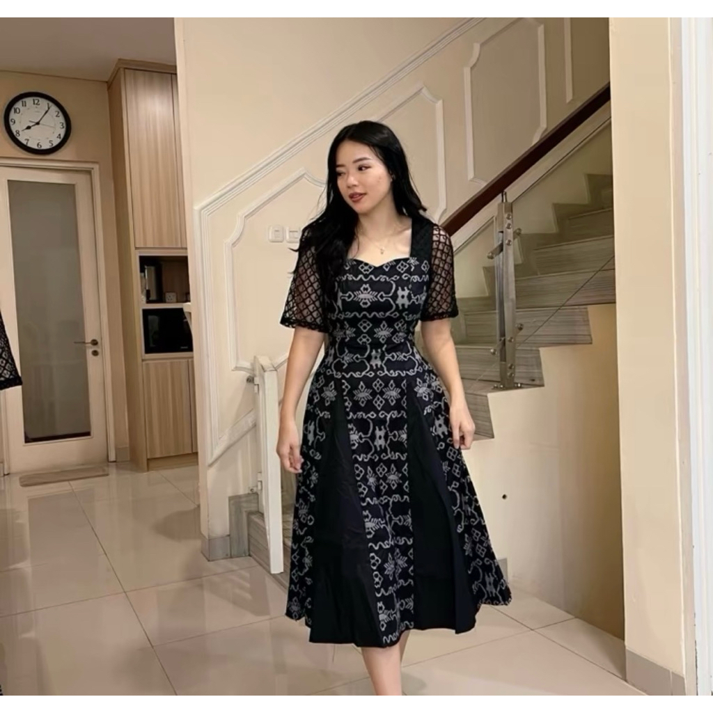 HERFIT TASYA DRESS BATIK WANITA KOMBINASI BROKAT MEWAH(DRESS PENDEK)