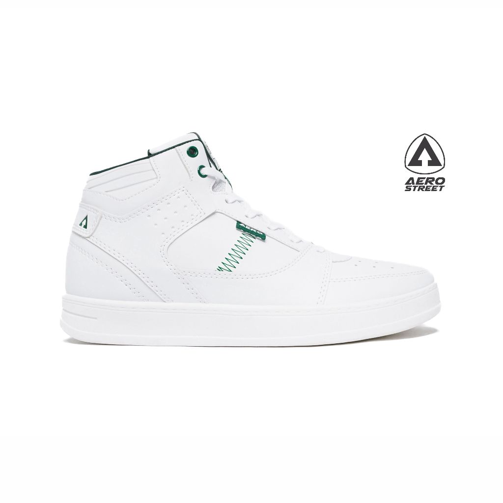 Aerostreet 37-44 Hoops High 2.0 Putih Putih Hijau Tua - Sepatu Sneakers Casual