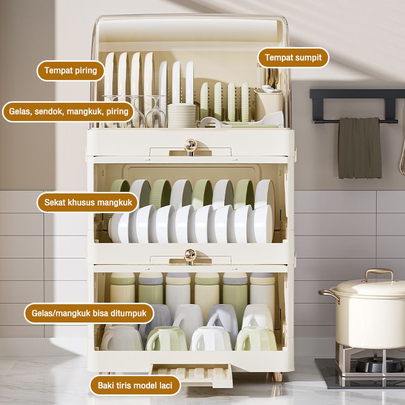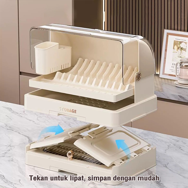 Rak Pengering Piring Lipat 3/4 rak piring minimalis modern rak piring stainless rak piring tertutup serbaguna