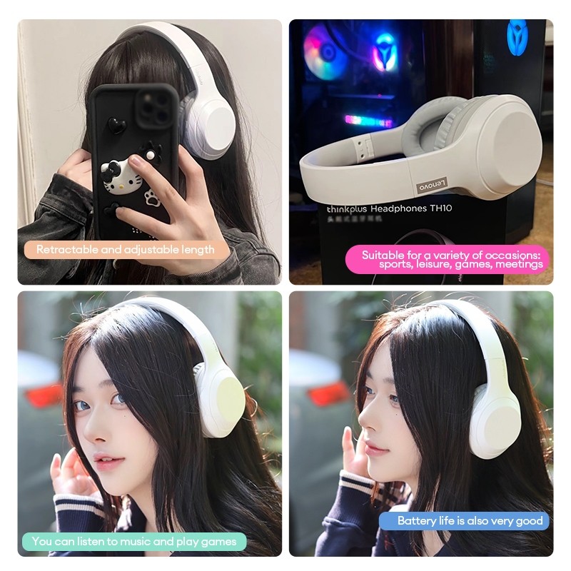 Lenovo Thinkplus TH10 Headset Bluetooth V5.0 Music Gaming Headphone Sweat Resistant White