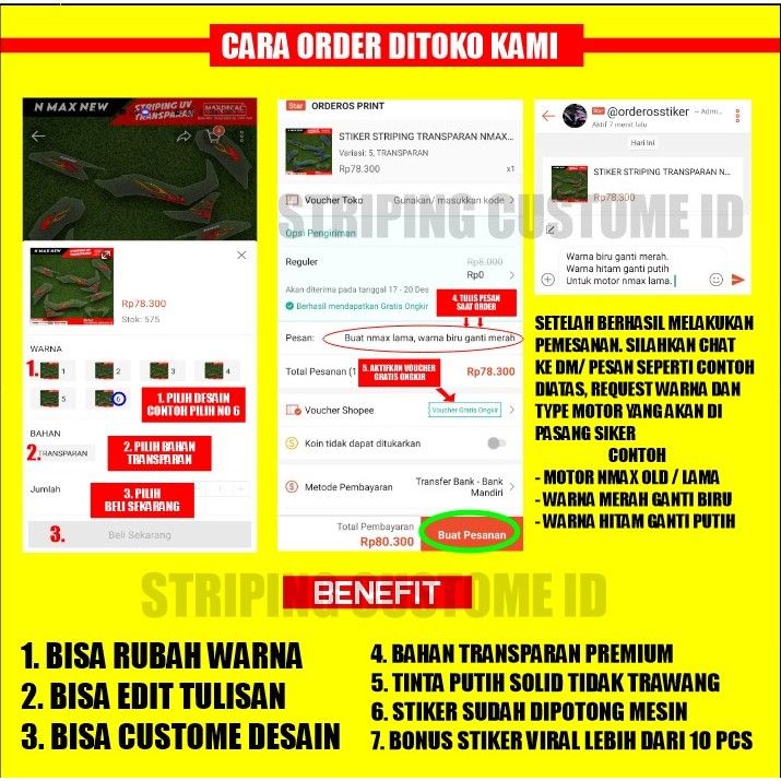 PROMO striping motor stripping sticker motor beat deluxe street fi esp transparan custome desain one piece luffy gear 3