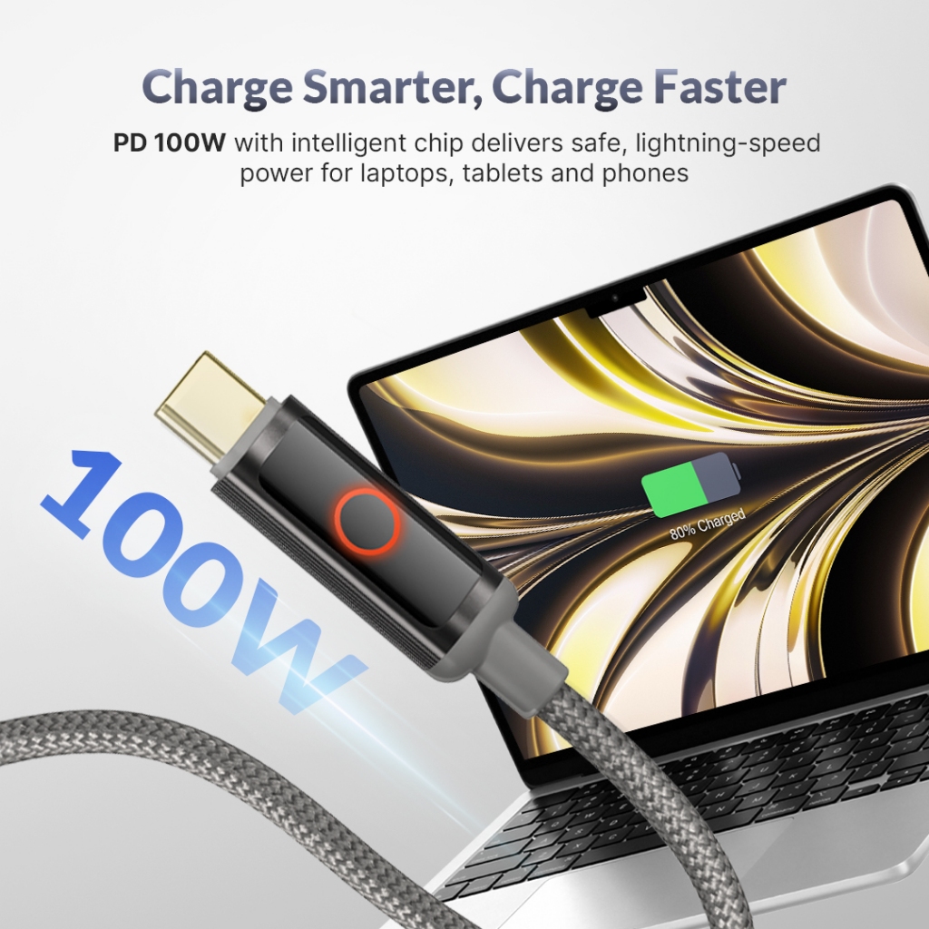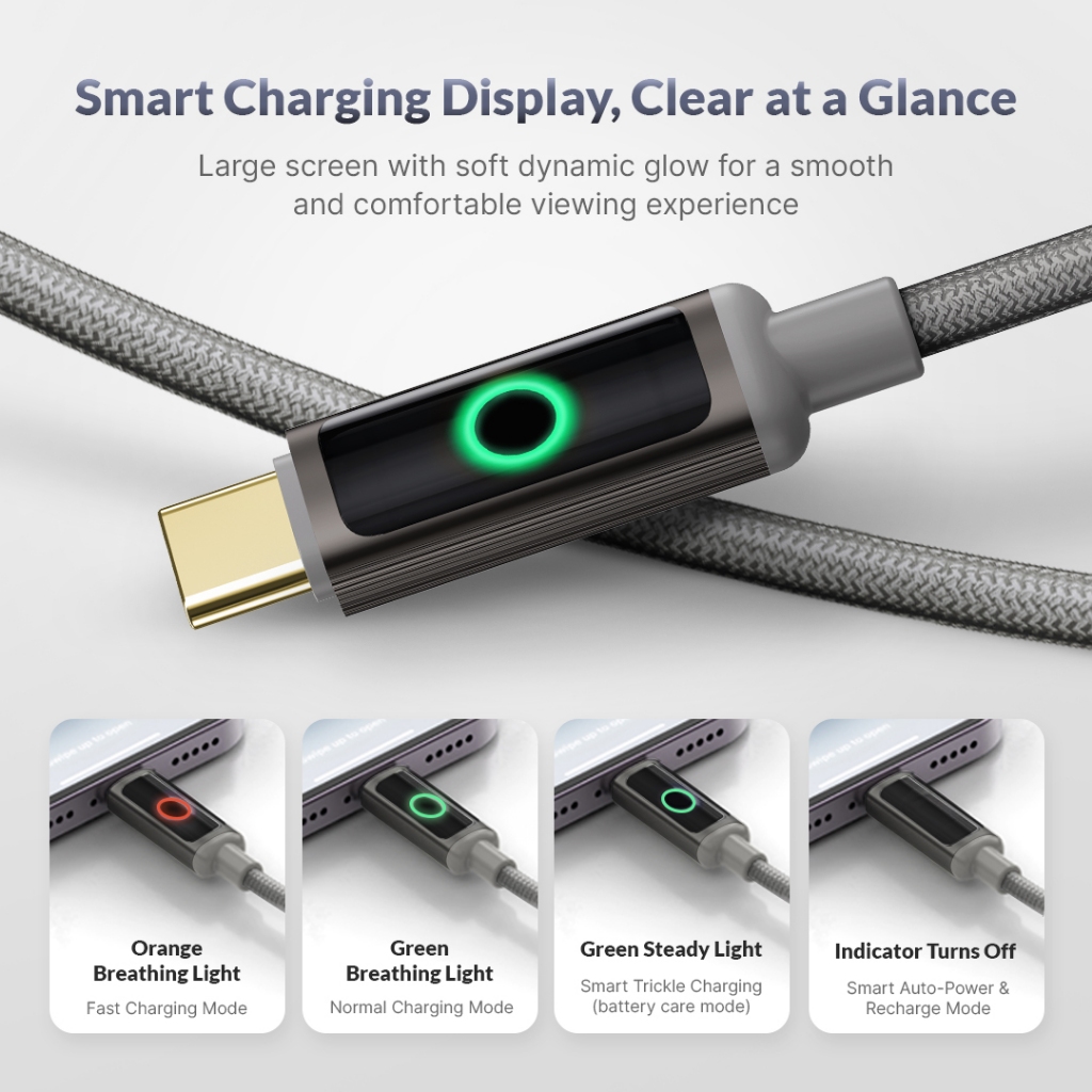 FLASH SALE Data Cable Auto Disconnect QC PD 100W Switch Pro LED Type C to Lightning Type C to Type C UCB70
