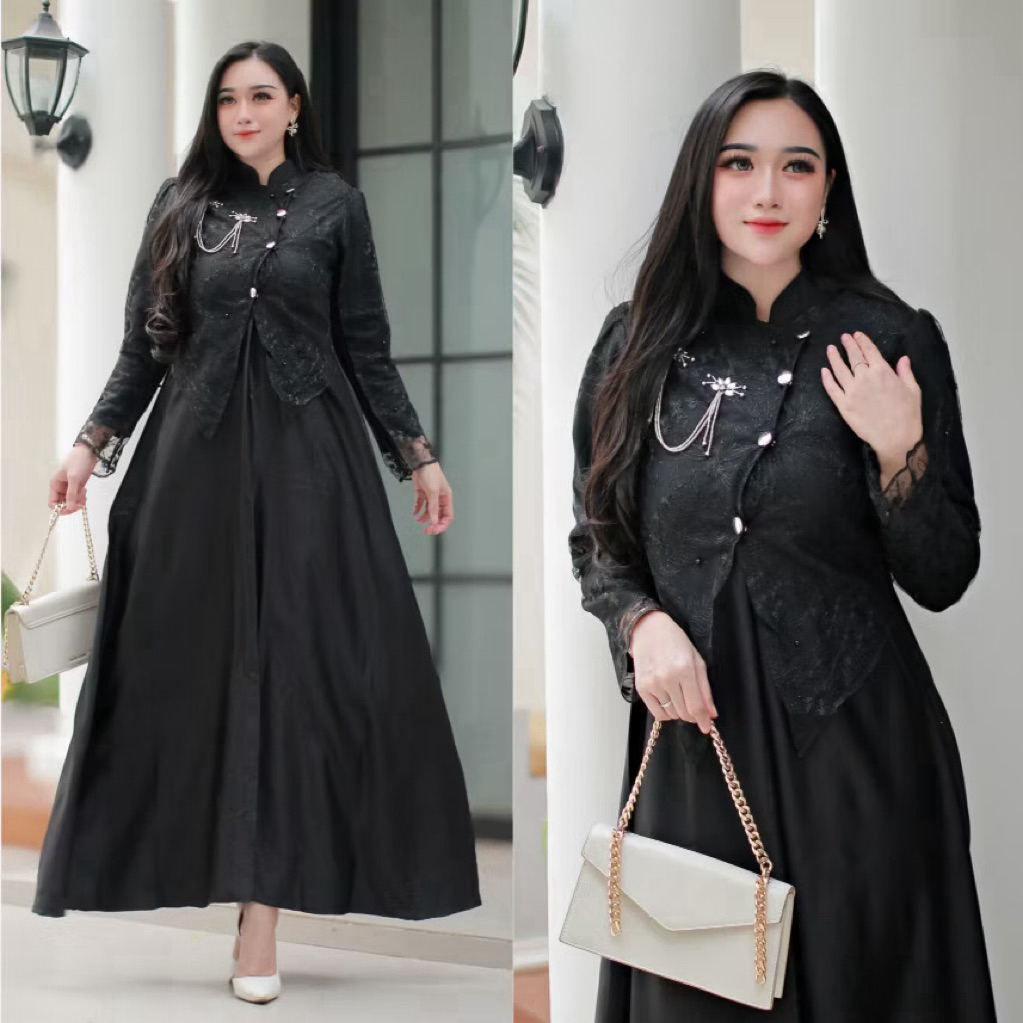 BY KARYAKU BATIK SAHARA DRESS LEBARAN 2026 DRESS JANGGAN BUSUI FRIENDLY GAUN PESTA MAXMARA MIX BROKAT PREMIUM MEWAH ELEGAN