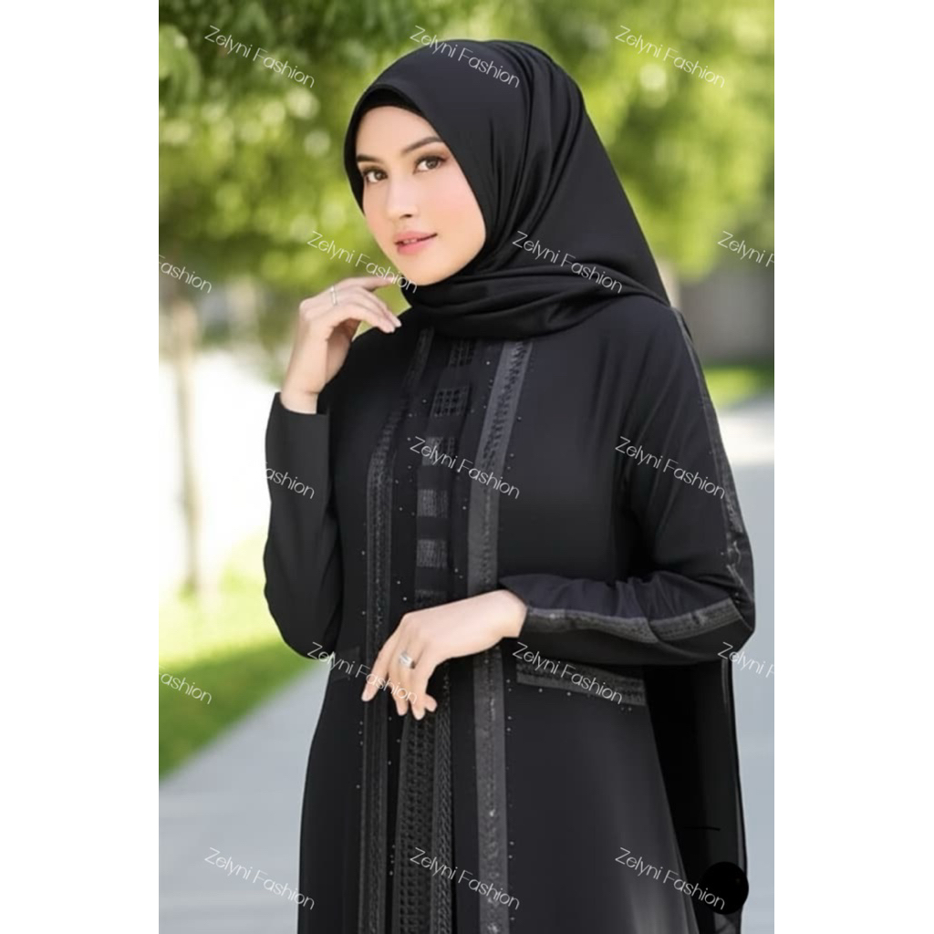 ( BEST SELLER ) ABAYA TURKEY BORDIR MEWAH SAKURA TERBARU GAMIS HITAM JERSEY MIX CERUTY BABYDOLL ABAYA HITAM MEWAH ELEGAN