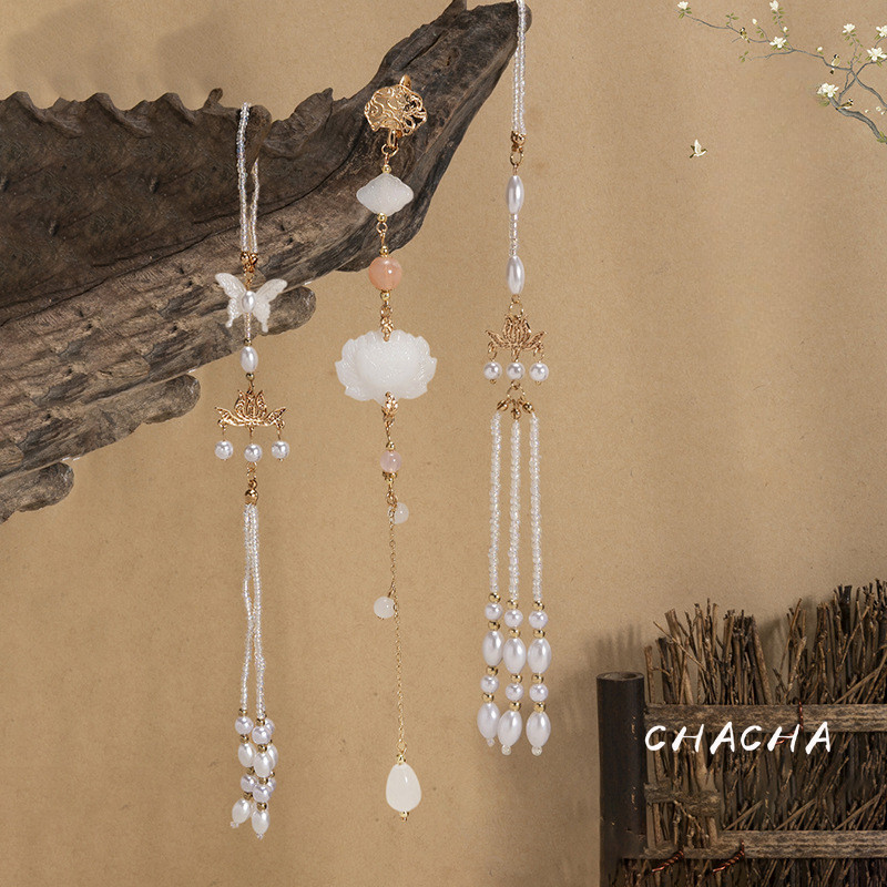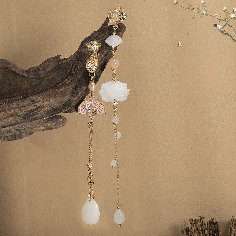 CC ACC Anting Muslimah Permata Lotus & Kupu-Kupu - Dengan Rumbai Gantung Elegan, Cocok untuk Hijab & Hadiah Pernikahan - Desain Islami yang Unik Q526