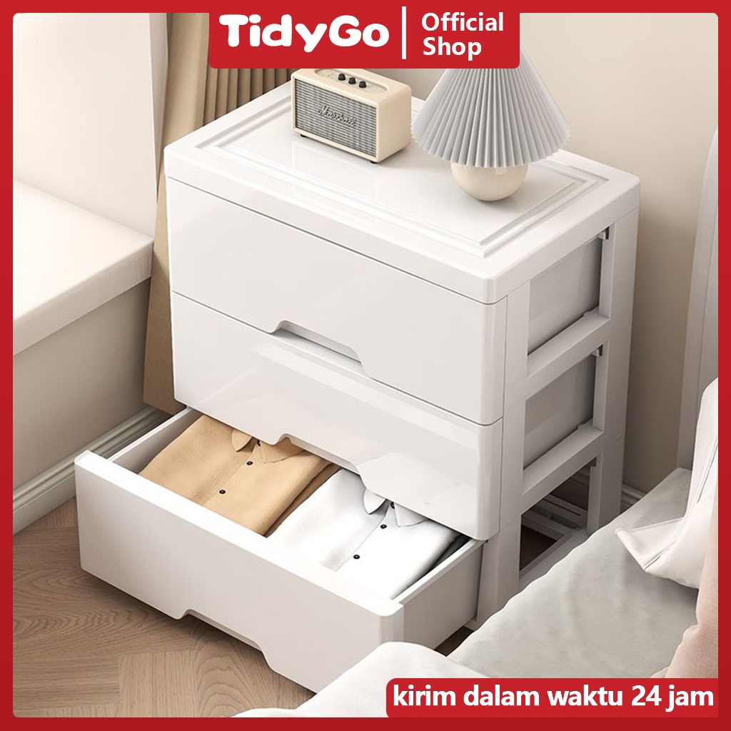 TidyGo Lemari Pakaian Pink Putih Tertutup Susun / Lemari Plastik Tebal Pink Putih Polos / Lemari Pakaian Plastik Susun B
