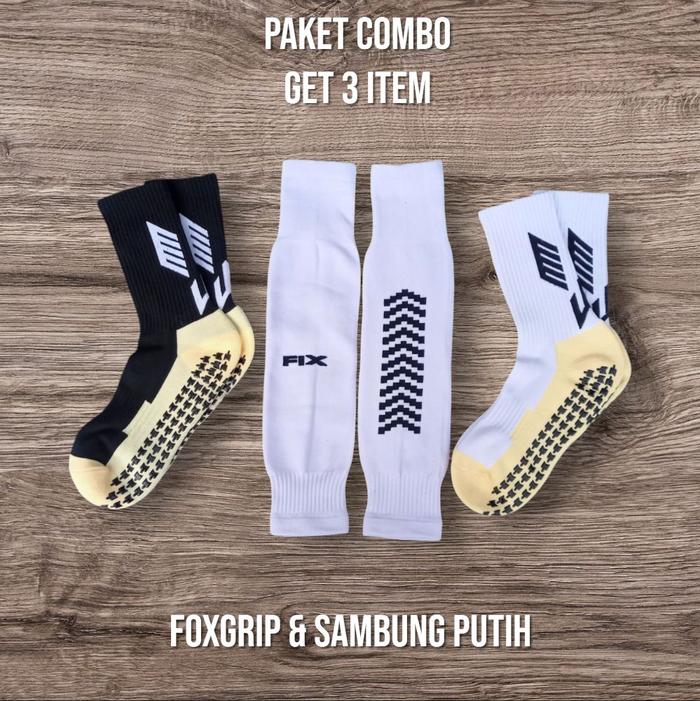 FOXGRIP & Sambung Putih PROMO Paket Combo Kaos Kaki Bola & Futsal 3 Item Bahan NILON Lembut Tebal