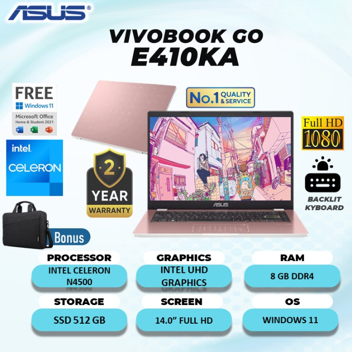 LAPTOP ASUS VIVOBOOK GO 14 GAMING E410KA E410MA L510MA N4500 8GB/512GB WINDOWS 11 TERLARIS TERMURAH GRATIS ONGKIR